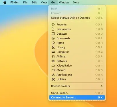 2) Open Finder > Go > Connect to Server