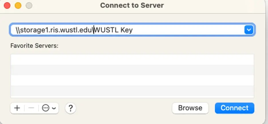 3) Enter the server address: \\storage1.ris.washu.edu\PI WashU Key or Share Name