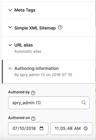 - Edit the "authored on" date. Earlier dates are first, later dates display lower on the page. This date does not display to site visitors.