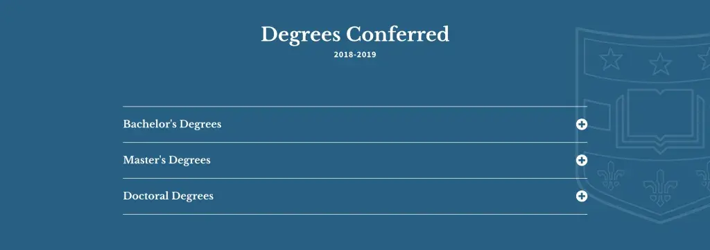 - Degree types are editable and display in an accordion-style