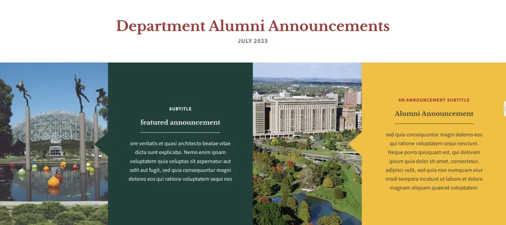 - If no featured announcement is used, the slides will be full-width.
