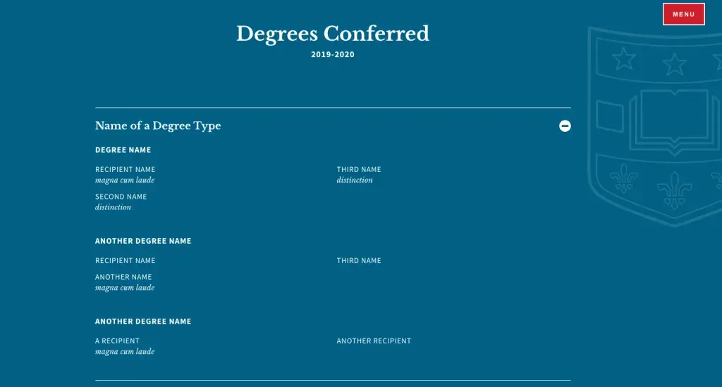 - Under each degree type, you can add a degree name, degree recipient, and a distinction
