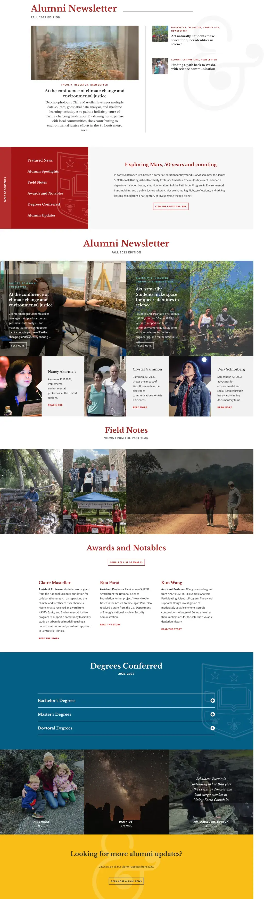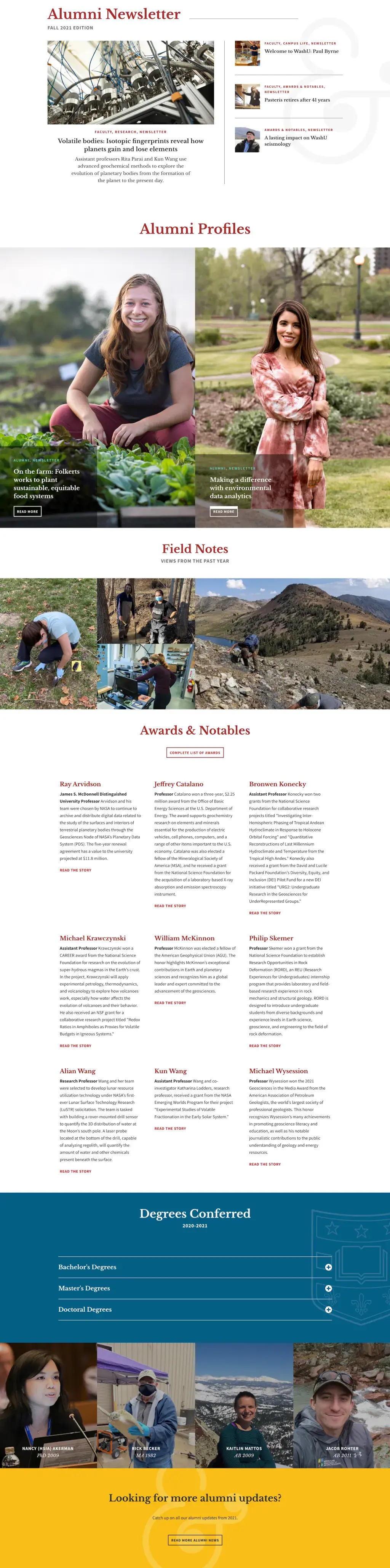 The Publications page was designed to be a home for newsletters, a more dynamic layout to display articles, and a way to present brief announcements without the need to click into an article.